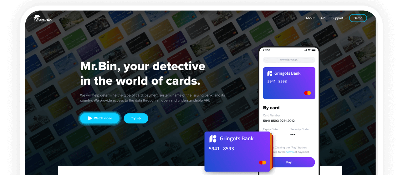 Your assistant in the world of cards. Uses the first few digits of your card number to pick out key information. Customizes the interface and increases payment conversion.