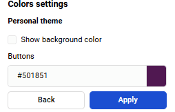 The page builder allows setting the color theme of the page. You can choose among the existing themes or define your own: