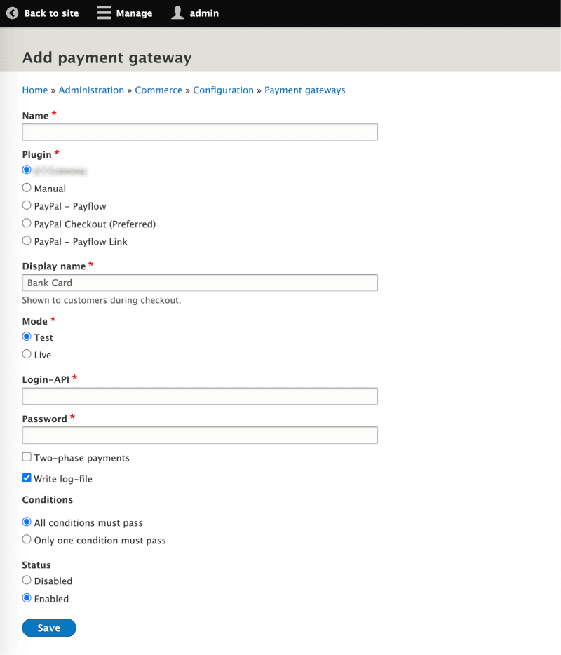 | Test mode | Defines whether the plugin works in test mode (YES) or production mode (NO).Note that login and password for test and production modes may differ. |