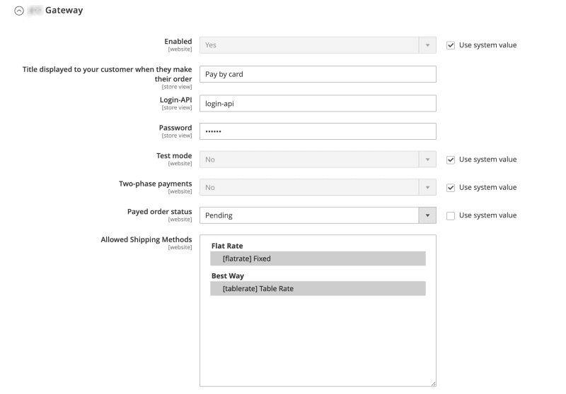 | Allowed Shipping Methods | Shipping methods the payment method can be used for. |