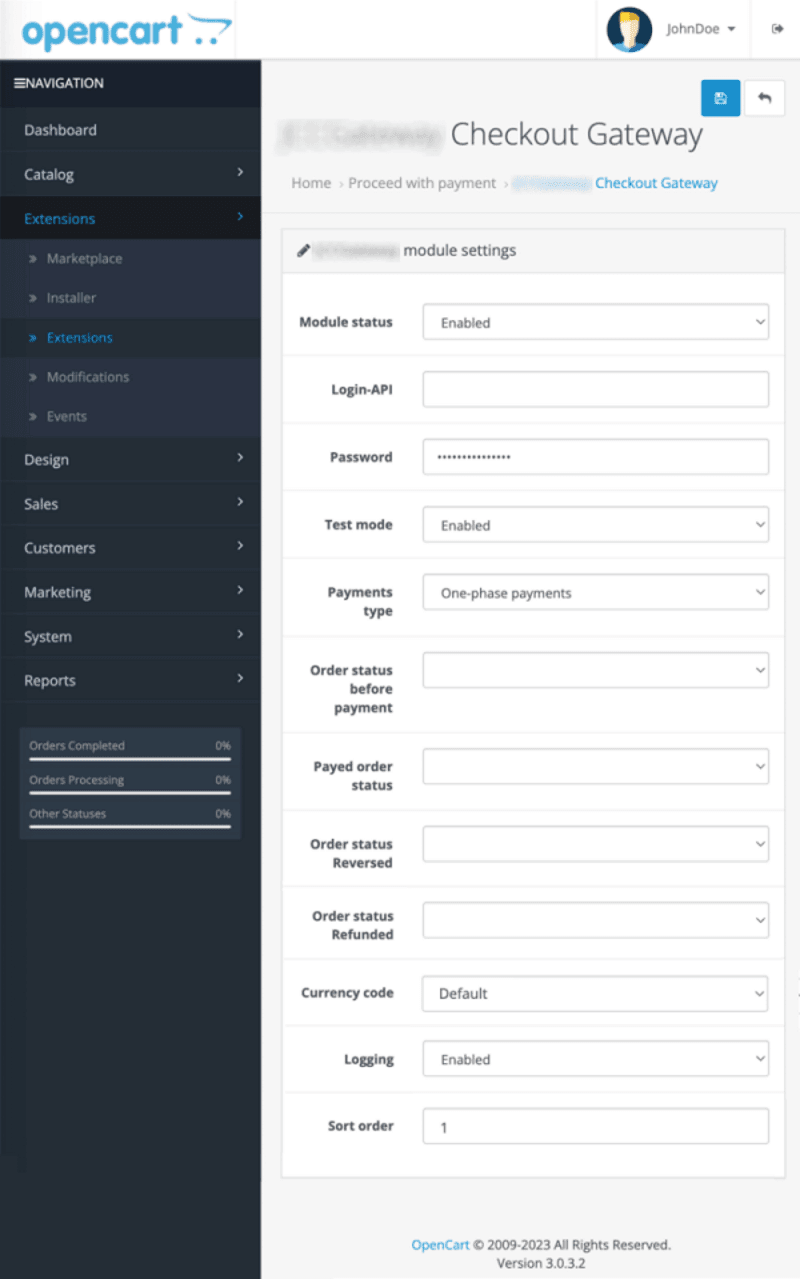 - In the side menu select Extensions > Extensions. In the Choose the extension type select Payments. The page will look as follows.