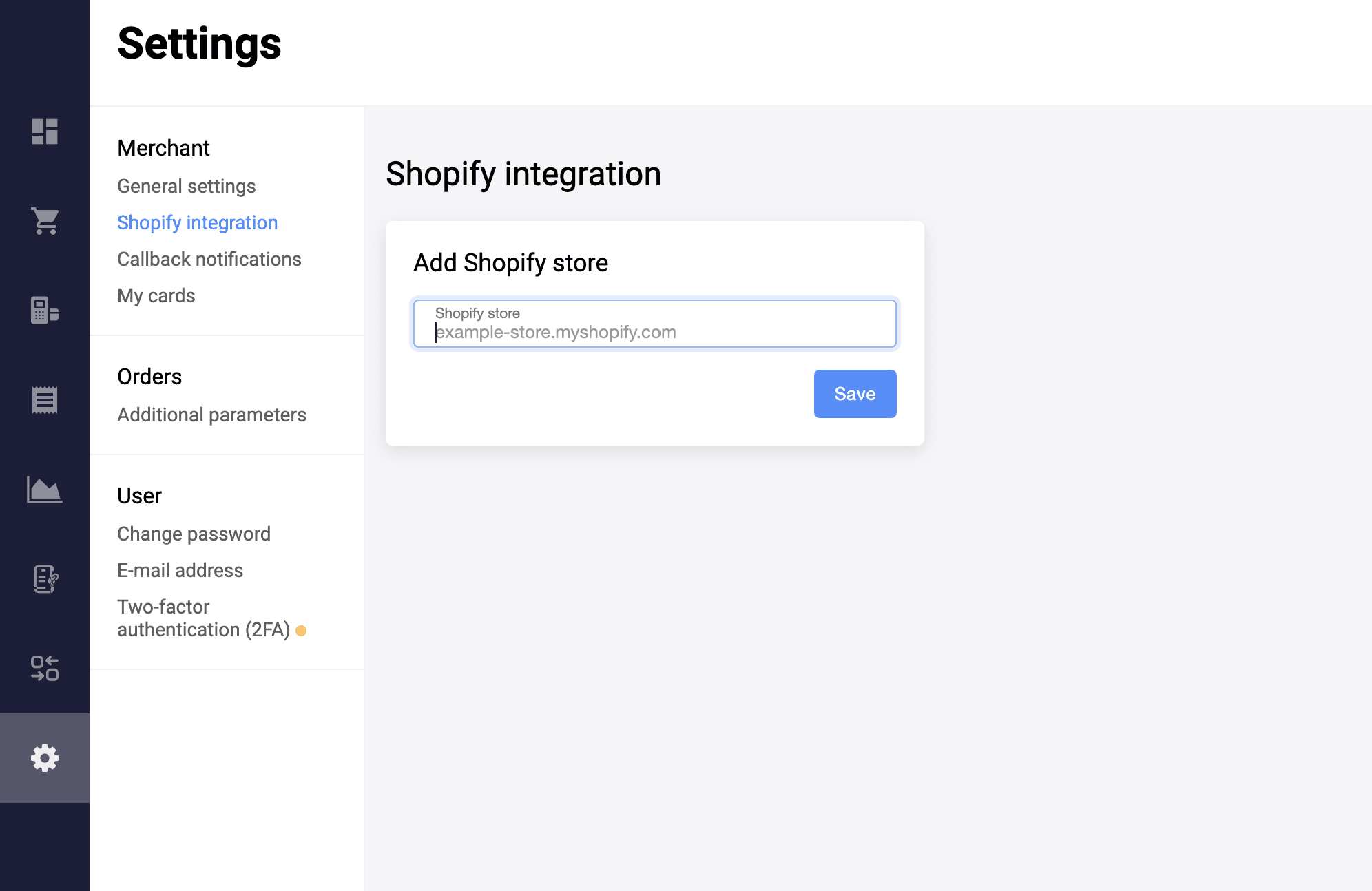- Specify your Shopify Shop Domain. For example, if you online store address is example-store.myshopify.com, specify example-store.