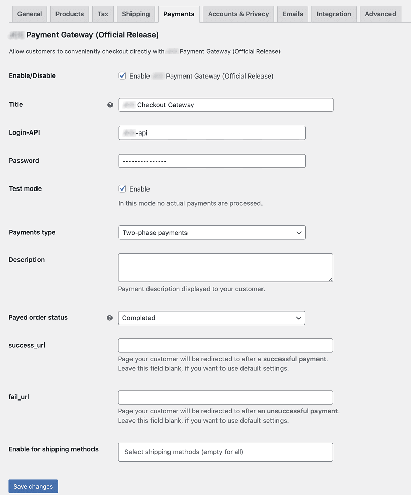 | Login-API | Your API account login. If the plugin works in test mode, enter test API login. If the plugin works in production mode, enter production login. |