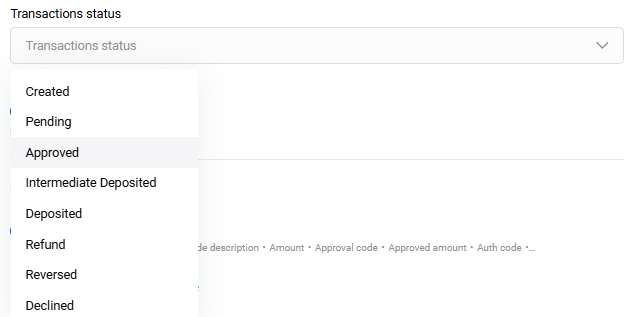 Approved - reversal, full amount only Deposited - refund for specific items |