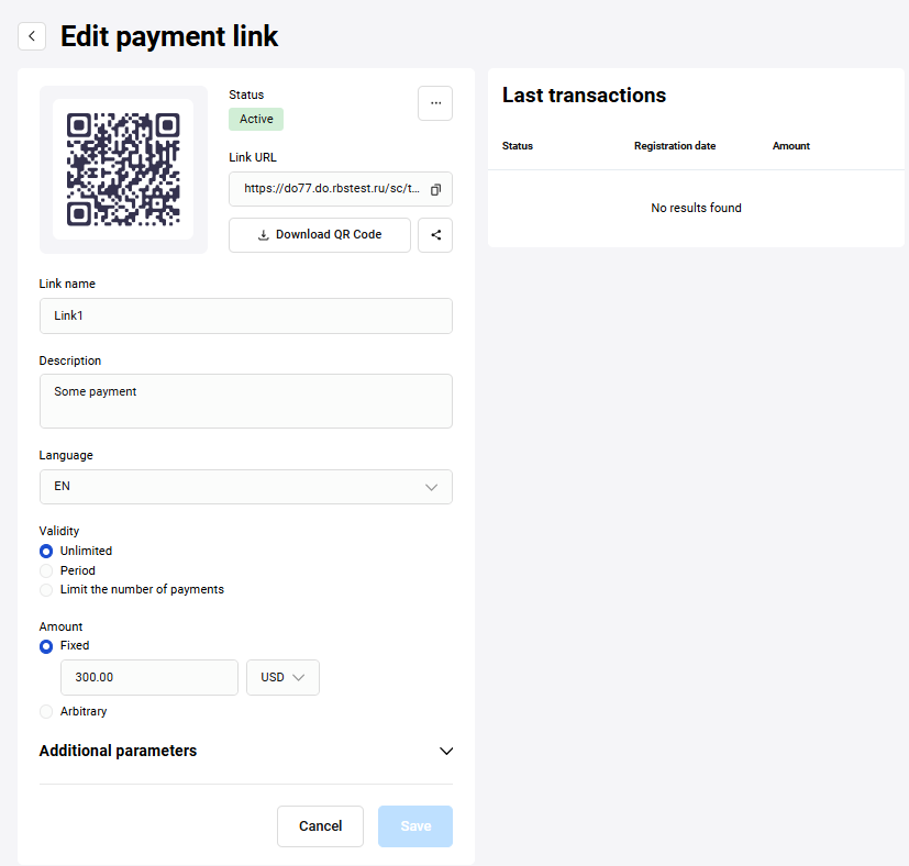 Session duration (in minutes) | The period given for entering the card data from the moment the payment is registered. If payment is not made within the specified period, the order will go to DECLINED status. After that Callback will be sent, if configured. Changing the status of such orders is performed according to the schedule, so slight delays are possible. If you request status on such an order and time has passed on it, the order will immediately be moved to DECLINED status |