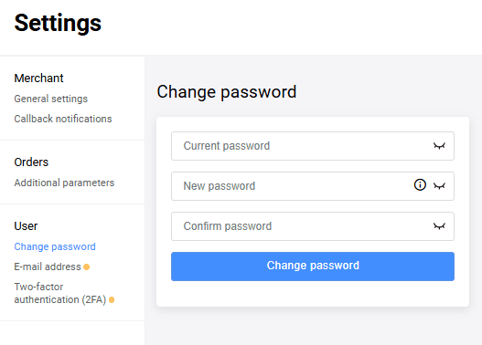 Grâce à l'API, vous pouvez créer des intégrations de paiement uniques. Par exemple, connecter le paiement depuis une page de paiement spécialement créée. Des informations supplémentaires sur l'API sont disponibles ici. Lors de la création du Marchand, vous recevez un e-mail avec l'identifiant et le mot de passe à usage unique. Après cela, vous pouvez générer vous-même le mot de passe API sur la page Travail avec l'API sur le portail vendeur.