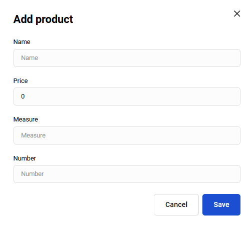 | Unité de mesure | Unité de mesure, par exemple : l — litres, pcs. — pièces. |