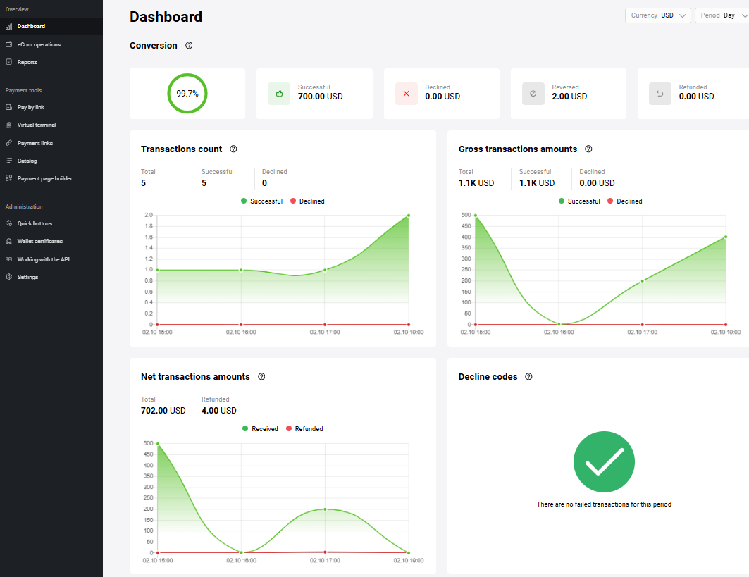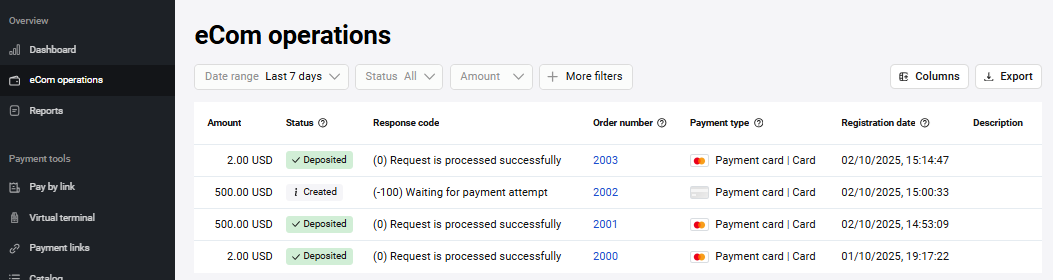 From your Personal Area you can issue full or partial refunds on orders paid by customers (when the order status is Deposited). For two-phase payments, the Deposited status means that the funds held on the payer's card have already been debited.