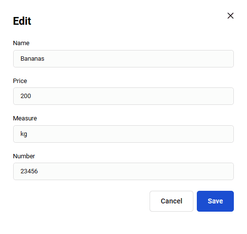 En cliquant sur le bouton d'édition, un formulaire pour modifier le produit s'ouvrira :