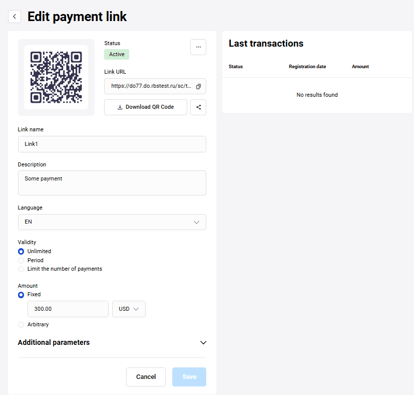 | Durée de session (en minutes) | Temps alloué pour saisir les données de carte depuis l'enregistrement du paiement. Si le paiement n'est pas effectué dans le délai indiqué, la commande passera au statut REJETÉ. Après cela, un callback sera envoyé, s'il est configuré. Le changement de statut de telles commandes s'effectue selon un calendrier, donc de légers retards sont possibles. Si vous demandez le statut pour une telle commande, et que le temps est expiré, la commande sera immédiatement transférée au statut REJETÉ. |