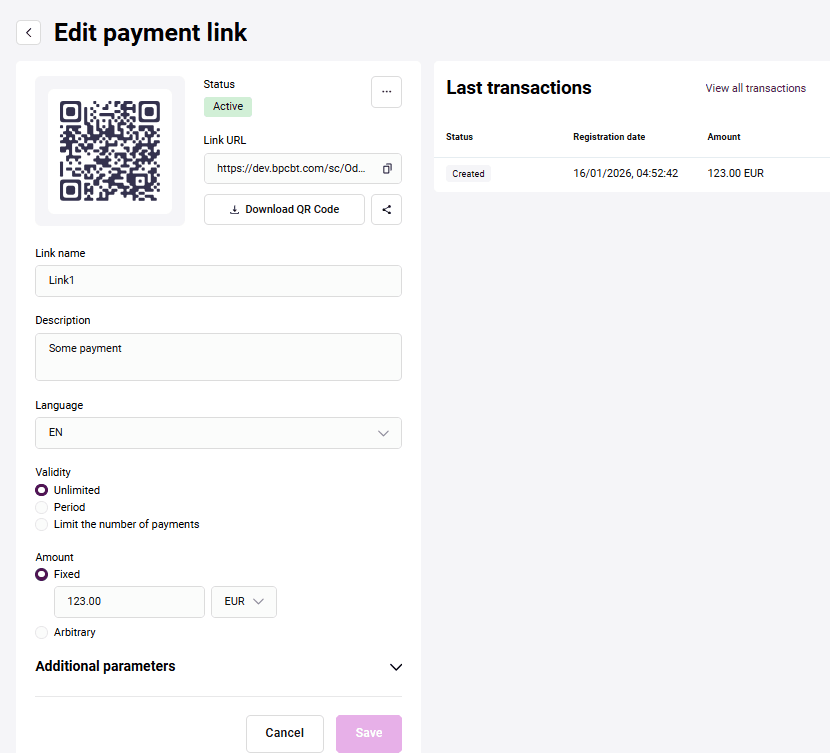 - Page de paiement réussi et Page de paiement échoué (indiquez l'URL ou choisissez l'URL standard).