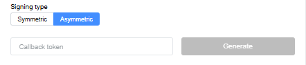 If the Symmetric signing type is selected, it is possible to generate a callback token. Also, if you select the Symmetric signing type, manual token entry is available.